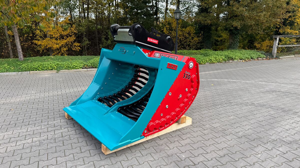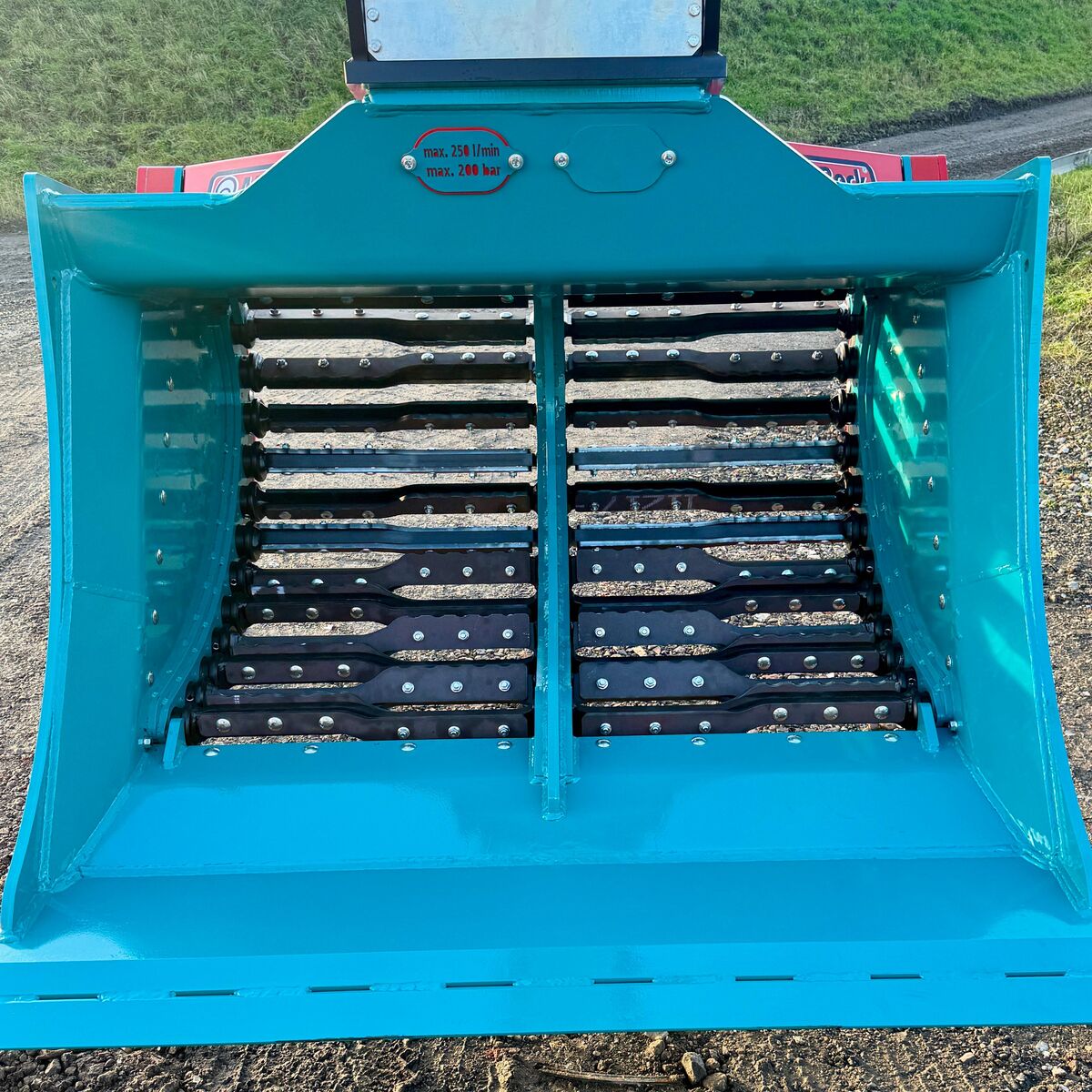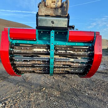 The MaC-Rock Vortex is a new type of screening bucket with a patented system. This system containes eccentrically rotating shafts, driven by a very robust drive by means of two motors and a chain and robust gears in a grease bath. The chain drive is very well protected and sealed by means of a triple seal, well integrated, in other words a real heavy-duty screening bucket. This system has proven itself without any problems at customers in practice for almost 2 years. This bucket screens faster than the existing buckets on the market thanks to the patented concept. The contour of an original excavator bucket makes filling very easy and fast. Screening at 25 or 45 mm. The latest development is a model that can be adjusted to a screen fraction of 25 or 45 mm by moving the rotors/shafts.